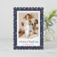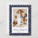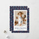 Nostalgiskt blått, rött och vitt, ful sweater-fotokort för God jul med Jultomten, renar, snöflingor, träd och bubblor. Anpassa enkelt det här klassiska helgdag med ditt foto och din familj namn.