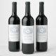 Klassiskt blått hand plockade löv monogram art brö vinflaska etikett