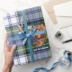 Klassiskt blått och Grönt Tartan-julfoto Presentpapper