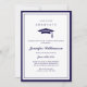 Fira i stil med vår timellösa inbjudan till marin blå och vit studentfest, med blå ramar och vit bakgrund, elegant skript namn & date och blå studentmössa. Perfekt för att markera denna viktiga milstolpe, denna inbjudan lovar att ange tonen för en sofistikerad och minnesvärd kväll. Lägg till en personlig beröring genom att ladda upp fotot på baksidan av inbjudan.