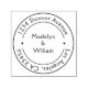 Klassiskt bröllop namn och cirkulärt gummi frimärke för enkel märkning av returadresser. Vårt val omfattar en rad klassiska bröllop namn och adress, perfekt för att lägga till en personlig och polerad avsluta till dina inbjudningar och till ditt kontorsmaterial. Förenkla din processaa med vårt högkvalitativa gummifrimärke som ger rena och tydliga intryck. Välj bland våra klassiska designalternativ och gör ett bestående intryck med varje kuvert du skickar.