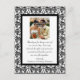 Ett svart och vitt elegant-dammmönster snöre-design med ett finare-skripttema till ram ditt bröllop-foto. Skicka ett hjärtligt speciellt tack till vänner och familj.