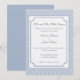 Grattisar på tillfälle i lycklig! Låt din familj och dina vänner få veta allt om din bröllop i stil med den här eleganten... Klassisk bröllopsinbjudan i serenblått! Det här inbjudan är enkelt att anpassa. Allt du behöver göra är att lägga till dina uppgifter i fält. Om du vill anpassa designen ytterligare klickar du på knappen "Anpassa den" där du kan ändra typsnitt eller färgen.