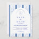 Klassiskt Delft Blått Porslin Bröllop Spara Datumet