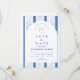 En elegant blå och vit chinoiserie-design inspirerad av klassiska Delftska porslinsmönster. Den invecklade blomsterbården omger en ren central panel och skapar en förfinad och tidlös look för sofistikerade bröllopsfiranden. Ömt europeiskt toalettskap-konstverk kombinerat med skarp marinblå typografi ger designen en arvet estetik som påminner om fint porslin och vintage pappersvaror. Perfekt för par som planerar ett klassiskt blåvitt bröllopstema med traditionell elegans.