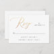 Den här förfinade OSA kort har skript i elegant guld stil parad med klassisk serif-text på vit bakgrund. Den utskrivna guld-effekten ger ett lyxigt utseende utan den riktiga folien. Dess minimalistiska utformning och känsliga typografi ger en ren, sofistikerad känsla. Perfekt för formellt, svart eller omskalbart bröllop. Gäster kan lätt få OSA och anteckna speciella detaljer, inklusive måltider, med tydligt markerade alternativ.