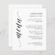 Förbättra elegansen i din bröllopsmottagning med klassiska bröllop-skript i finare för platsinställningar, perfekt för en mängd olika uppskalningshändelser. De här menykorten är idealiska för vanlig svarttids bröllop, sofistikerade balrumsmottagningar, tidslösa traditionella ceremonier och lyxrika målbröllop. De har klassisk skripttypografi och en utformning av eleganten och kompletterar förfinade décor, inställningar för chic bord och klassiska färg-scheman. Oavsett om du är värd för en intim middag eller ett stort firande, ger de här menykorten en snyggt och ett elegant sätt att presentera din meny samtidigt som du tillför en liten skönhet utan tidslängd till din speciella dag.