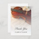 Skriva ett tankeväckande tack, uppskattning och tacksamhet efter ett tema förlovningsfest, möhippa eller giftermål med eleganten Classical Violin och Vit ros Bröllop Flat Tackkort. Tackkort i anpassningsbar i klassform har en blommigt foto av fiolin med tre blommor från ro, bröllop ringar och lakan.