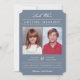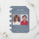 Skicka det moderna "old school-fotot" från stil, spara datumet med dina barndomsbilder! Bakgrunden färg kan enkelt anpassas till vilket färg som helst - både framifrån och bakåt. Visad: dammig blå. Modern vit rand-design på baksidan.