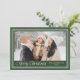 Skicka helhjärtade semesterhälsningar med det här fotokortet med en djup bakgrund av grönten i skogen som ramats in av en mjuk kräm dubbla gräns. "God jul" visas i elegant kräm under familjens foto, där namn och år visas nedan. På baksidan finns utrymme för ditt personlig-meddelande, vilket skapar en mysigt men sofistikerad väg till julglädje.