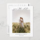Klassiskt vykort stil bröllop spara datum med en enkel och minimal svartvit design med en kombination av traditionell serif typsnitt och ett elegant-skript tillsammans med ditt datum i stort format för en modern beröring med ditt favoritfoto. Baksidan har ett andra foto för totalt två bilder. Den här eleganten sparar du det datum då vykortet är underbart för ett formellt bröllop.