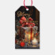 En klassisk julklapp märkre som innehåller en fin, inslagen gåva som tänds med ljus.