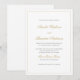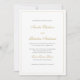 Ange tonen för din sofistikerade händelse med vår klassiska svartvit och Guld-Gräns-formella skriptbröllopsinbjudan. Med en lyxig guld gräns på en skarp vit bakgrund utstrålar den här designen en tidlös elegans. Parets namn markeras med ett snyggt skript i guld, medan de återstående detaljerna presenteras i klassisk svart serif-typografi, vilket garanterar ett förfinat och polerat utseende. Perfekt för formellt eller svart bröllop, den här inbjudan kombinerar underskattad lyx med varaktig charm, skapar det ett oklanderligt val för din speciella dag.