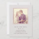 Enkel, chic och feminin; denna spara-datum-design använder mjuka grå och neutrala färger, med en skimrande falsk roséguld kant, för att skapa en romantisk ton. Minimal typografi säkerställer att gästerna vet att bröllopet kommer att vara formellt, samtidigt som alla detaljer tillhandahålls via bröllopswebbplatsen.