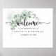Denna klassiska gröna eukalyptus-fest för förlovningsfirande välkomstaffisch är perfekt för en rustik förlovningsfest. Designen har vackra akvarell gröna eukalyptusblad.