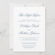 Klassiskt handskript i den blå Eleganten natten före bröllopsinbjudningskort. Fira din speciella dag med den här eleganten och ett vackert bröllopskort för att passa ditt speciella tillfälle. Alla texterna är i förväg ordnade så att du enkelt och snabbt kan anpassa dig med dina egna detaljer.