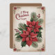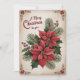 Ett Helgdag-kort för God jul är en charmerande och elegant som förkroppsligar julsäsongens anda. Kortet har en fantastisk mittpunkt med pulserande röda poinsetter, omgiven av lush grönt holly löv och gräs grenar. Rik röda bär och känsliga vita accenter på löven gör utformningen mer djupgående och sofistikerad. Uttrycket "A God jul to you" är elegant skrivet överst och skapar ett varmt och inbjudande meddelande. Bakgrunden vintage-stil, komplett med en mjuk beige-ton och subtil struktur, förbättrar kortets tidslösa känsla. Det här kortet är idealiskt för att skicka önskemål till nära och kära.. perfekt för att skicka eller presentera under julsäsongen.