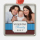 Klassiskt julfoto av blått rand-band i porträtt julgransprydnad metall