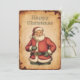 Sprid helgdag hälsar med vårt charmerande "Klassiskt julkort Jultomten Lycklig". Den här festliga designen har en glatt bild av Jultomten, klädd i hans ikonröda kostym och hatt. Med ett varmt leende och ett vänligt ögon överlämnar jultomten julglädjens anda och generositet. Hans grönt handskar och svarta bälte tillför en klassisk beröring till hans traditionella kläder. Kortet ställs in mot bakgrund av vintage-stil med ett varmt, texturerat parkeringsutseende, ge ett nostalgiskt och tidlöst intryck. Uttrycket "Lycklig jul" är elegant skrivet överst i vackra toner och kompletterar den övergripande estetiska vintagen. Det här kortet är perfekt för att skicka önskemål till vänner, familj eller kolleger under julhelgen.