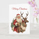 Klassiskt Jultomten Riding a Reindeer jul Kort