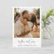 Klassisk kallgrafi Skriptfotobröllopsinbjudning. Anpassa enkelt den här moderna, formella, svarta och vita inbjudan genom att ersätta varje information med din egen. Kammuschskripttypografin är så chic och säkert en nyckelfråga för kom i flera år. Ladda upp ett foto av lodrät/porträtt. Kontrollera förhandsgranskningen innan du lägger till den här traditionella inbjudan till kundvagn!