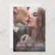 Klassisk kalligrafi sparar datumdesignen med ett pars foto, enkla och elegant. Underbara fotot sparar datumkorten för vintage bröllop, formella bröllop och andra evenemang. Välj "Klicka för att anpassa ytterligare" i avsnittet "Anpassa den här mallen" för att justera fotots position och storlek.