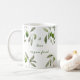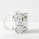 Klassiskt keramiskt mugg med olivträd och löv och jag kärlek-vegan-livsmedelsmeddelande skapat av Alan Skyrme.