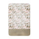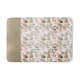 På den här snyggten är badmattan en vit bakgrund med en lafy botanisk vattenfärg mönster som skapar ett modernt elegant tema med guld blankt gräns för extra glam.