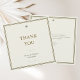 Visa din tacksamhet med den eleganta elegans som finns i det klassiska elfte och Guld-Anpassningsbarna-meddelandet Bröllop - tackkort. Med en förfinad elfenbensbakgrund som utformats av dubbla guld och grönt gräns med en delikat handflatan-ikon blandar denna design ihop modern enkelhet med klassisk sofistikering. På framsidan framhävs datumet namn och bröllop i en ren, minimalistisk utformning, medan baksidan ger utrymme för ett personlig-meddelande - vilket gör att du kan framföra ett hjärtligt tack till dina gäster. Som en del av insamlingen av Gräns i Elfenbenskusten och Guld är det ett tack för att du smidigt har matchande inbjudningar, spara-i-data, program, menyer och kontorsmaterial som skapar en sammanhängande och oförglömlig bröllop-svit. Finns i designalternativen för kvadrater och 5x7. Perfekt för bröllop, möhippor, årsdagar eller milstolpe firande, det här tackkortet för meddelande erbjuder ett förfinat och redo att skicka-alternativ som ser till att dina gäster känner sig uppskattade utan extra-steget att skriva varje anteckning. Oavsett om det är parat med andra delar från insamlingen eller skickat på egen hand, skapar det en lyxvänlig tacksamhet som på ett bra sätt kompletterar alla bröllop-sviter. Finns i designalternativen för både fyrkantig och 5x7.