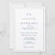 Denna minimalistiska och klassiska bröllopsinbjudan har en vit bakgrund med ett monogram/initialer och klassiska bokstäver i marinblått. Den omvända sidan har en marin blå bakgrund. Anpassa den efter dina behov. Du hittar matchande produkter i min butik.