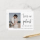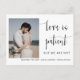 Det här vykortet för utlysning av brev i bröllop innehåller en elegant-kalligrafi och ett enkelt sans-serif-typsnitt med ett foto för ett rent minimalistiskt och modernt utseende, vilket är ett vackert sätt att informera om ditt kommande bröllop. Enkelheten i den här utformningen gör att du får lite elegans i dina annonskort i bröllop. Det fungerar bra med många bröllop-teman och är definitivt ett underbart tillägg till bröllop. Anpassa bara namn och formuleringen i några enkla steg och anpassa vykortet med ditt foto av lycklig-paret till ge med vykortet ett bra personligt drag. Observera: elegantens kalligrafi av ordalydelsen "Kärlek är tålmodigt, men det är vi inte" och "ingenting finare enbart kärlek" tillsammans med linjer och andra grafiska teckningar och inslag kan inte redigeras, raderas eller flyttat. De är fixerade.