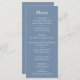 Berätta för dina gäster vad som står på menyn för din bröllopsmottagning med hjälp av den här klassiska menyn med dammiga blå bröllop.
