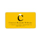 Enkel klassisk versal 'C' svart monogram på gul bakgrund, med vit examenshatt / avslutningsmössa returadressetiketter