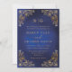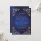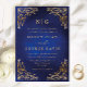 Klassisk inbjudan till Monogram Guld Ornate Blue Wedding i Ram
