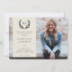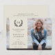 Ett elegant, modernt, könsneutralt fotomeddelande från studenten. Med ett fullt-blekt foto med ett överlägg av färg och en lagerkrans. Malltexten för student är helt och hållet anpassade, så teckensnittet storlekt, stil, färg och placering kan ändras. Baksidan har en heltäckande färgad och malltext för ett längre meddelande. Om du inte vill ta med någon text på baksidan raderar du den innan du beställer den. Om du vill ha ett foto på baksidan av kortet tar du bort både bakgrunden till färgaden och malltexten och överför ett eget foto. Designen finns i andra färg i min butik.