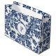 En elegant marin, blå fuktmönster som ställs in mot en pristinvit bakgrund, visar upp intrikata motiv för blommigten och skör kurvor. Den här designen utstrålar tidlös sofistikering och charm.