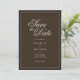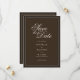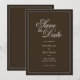 Skapa dina egna anpassade bröllopskort för att spara datumet i en vintage klassisk estetik med gamla pengar. Lägg till dina personliga detaljer för din bröllopsdag i elegant, tidlös typografi som visas här i mörkbrun färgdesign.