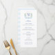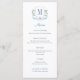 Den här elegantens blå och vita menydesign har mina egna vattenfärgsillustrationer (banderollen vapensköld och vattenfärg). Den här designen visas här för ett Bröllop, men med några små ändringar fungerar den på ett utmärkt sätt för en födelsedagsfest för döpt/baptism eller vuxen.