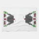 Ett vackert mysigt hem med grått tak och röd ytterdörr och röda accenter. Träd på varvet.