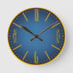 Klassiskt Office Clock i Blått Guld Ram Rund Klocka