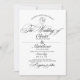 Modern snyggt svartvit minimal bröllopsinbjudan med ett handskrivet elegant med kurvor och ett monogram av bruden och trippen. Klass och elegant, enkel och modern inbjudan.