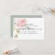 En klassisk bröllopsinbjudning i pastellvattenfärg, inramad av en bukett med målade blommor i mjuk rosa, vitt och sage. Dina uppgifter om bröllop markeras med alla svarta bokstäver.