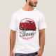 Det här är en rendering av en amerikansk klassisk gaturodbil med röd vintage i bakgrunden för ett återformat utseende.