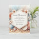 Klassiskt Seashell Beach-bröllop för havets skönhet till spara datum meddelande. Kortet har säsongsmotiv för eleganten, perfekt för ett tidlöst hav firande. Du kan anpassa alla detaljer för att spegla din syn på ditt bröllop genom att anpassa onlinen helt och hållet. Med ett snabbnedladdningsalternativ får du ett fantastiskt digitalt kortnummer med dina gäster och bjuder in dem att gå med i din kärlek-kust.