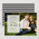 Elegantens skript och text gör att den här svarta och vita randiga texten sparar datumperfekten för alla par som har ett traditionellt bröllop firande. Designen har ett foto.