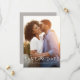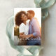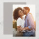 En enkel men elegant sparar datumfotokortet för att meddela din förlovning och kommande bröllop. Fotot med ett lodrät har vit text i grund med gott om utrymme för namn och stora dagdetaljer.