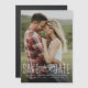nyheterna om din förlovning och det kommande bröllop firande med det här magnetkortet för ett lodrät med ett enda foto sparar datumkortet med en modern behandling av elegant i vitt som sitter vid grund om ett lodrät foto. Typen har plats för långt namn, plus platsdatum och annan information för vänner och familj som en webbplats.
