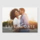 En enkel men elegant sparar datumkortet för att meddela din förlovning och kommande bröllop. Fotot med ett vågrät har vit text i grund med gott om utrymme för namn och stora dagdetaljer.