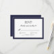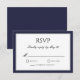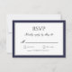 Svarskort med marinblå och grå kant. Tекст på block- och elegant skrivstil. Marinblå baksida.