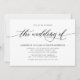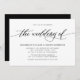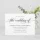 Enkel, klassisk inbjudan till elegant bröllop innehåller typografi-skript i handskriften "bröllop of" och detaljer i fet versal text på vit bakgrund.